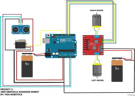 Object Following Robot Circuit Diagram. System circuit diagram and components 2.1 circuit diagram figure 1: As shown in the figure, the major building blocks of the robot are ultrasonic distance measurement (udm) sensor hc sr04, dual dc motor driver module.
